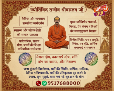 ज्योतिषीय परामर्श के लिए महान ज्योतिर्विद राजीव श्रीवास्तव जी से संपर्क करें ☎️ 95176 88000 पर आप संपर्क करें।